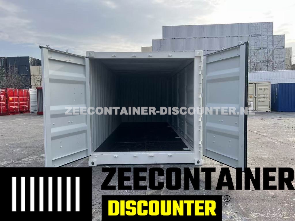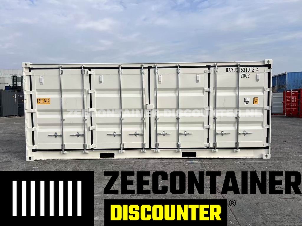 Nieuwe 20’Low-Cube Full Side Acces zeecontainer, Kleur buitenzijde RAL9010 puur wit, extra stevige constructie. Geschikt voor zowel opslag als internationaal transport van materialen. Voorzien van inbraakwerend slotkast. Bamboo vloer met zwarte topcoating en gegalvaniseerde deurstangen. Met aan een lange zijde deuren volledige te openen. En aan een korte zijde deuren. Eenmalig verscheept met lading.