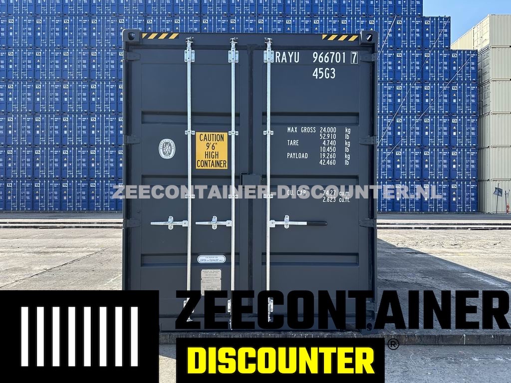 40ft high-cube dubbeldeurs zeecontainer met lepelgaten in RAL7016 antracietgrijs nieuw