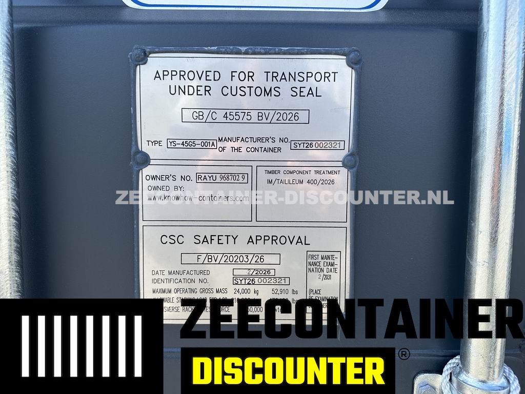• Buitenafmetingen : 12.192mm lengte x 2.438mm breedte x 2.896mm hoogte